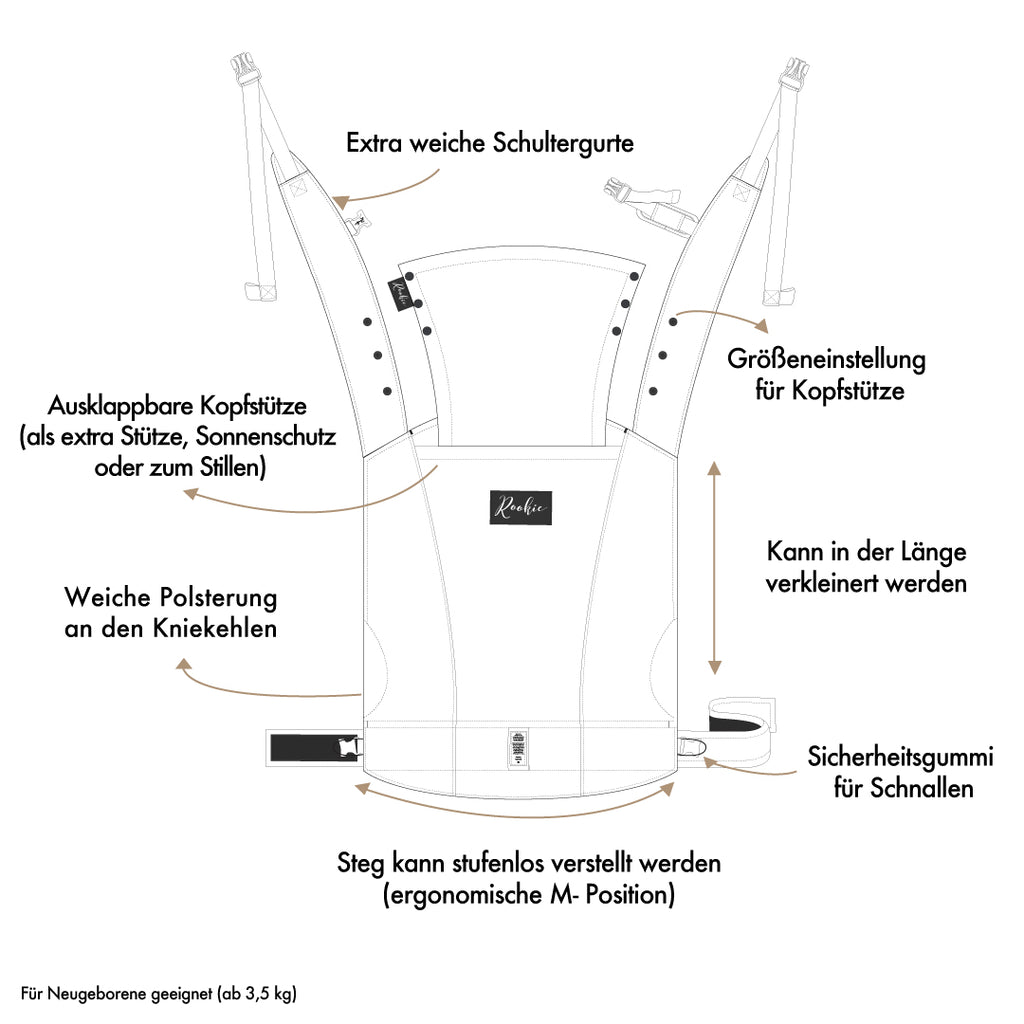 Die ROOKIE Konnekt setzt den Standard einer innovativen Bauch- und Rückentrage. Sie wurde für ihren hohen Tragkomfort und durchdachtes Design mehrfach ausgezeichnet: